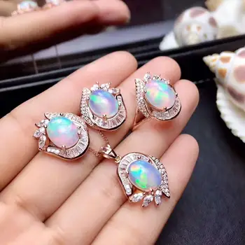 Special Offer أوبال مجموعة عقيق طبيعي طقم مجوهرات الطبيعية ريال أوبال 925 فضة 1 قطعة قلادة ، 1 قطعة حلقة ، 2 قطعة القرط Discount 48% Today!