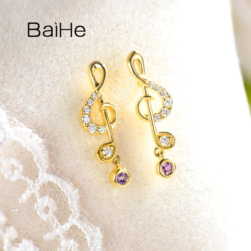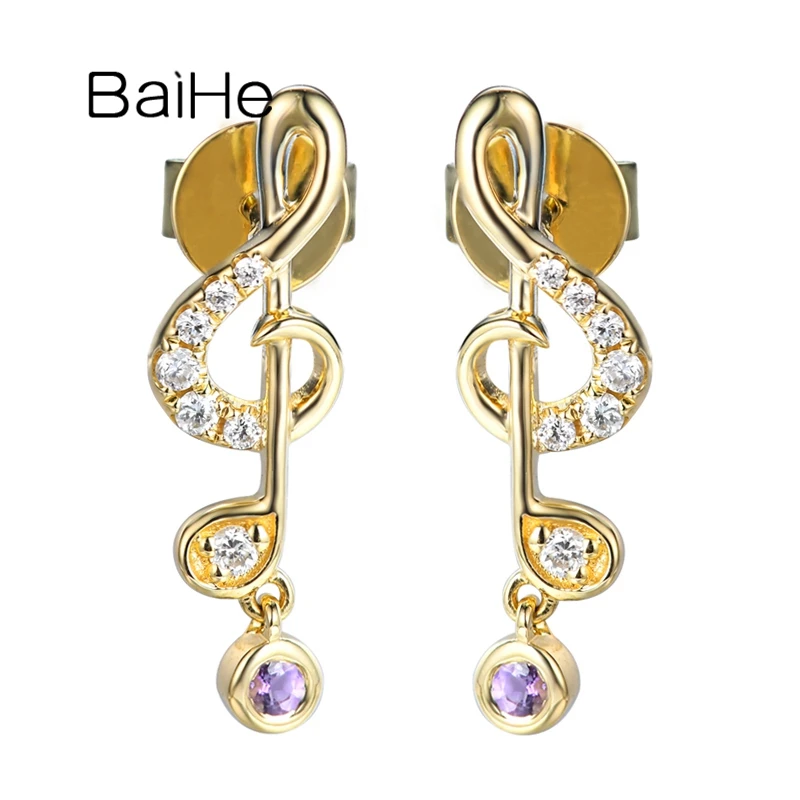 Special Offer BAIHE الصلبة 14K الأبيض/الأصفر/ارتفع الذهب الموسيقى تدوين الماس أقراط الأرجواني كريستال أقراط فتاة الطازجة قليلا أقراط Discount 23% Today!