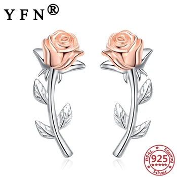 Special Offer YFN 925 فضة الوردي روز إسقاط أقراط للمجوهرات العصرية هدايا 925 الفضة والمجوهرات المرأة أقراط هدايا عيد الأم Discount 0% Today!