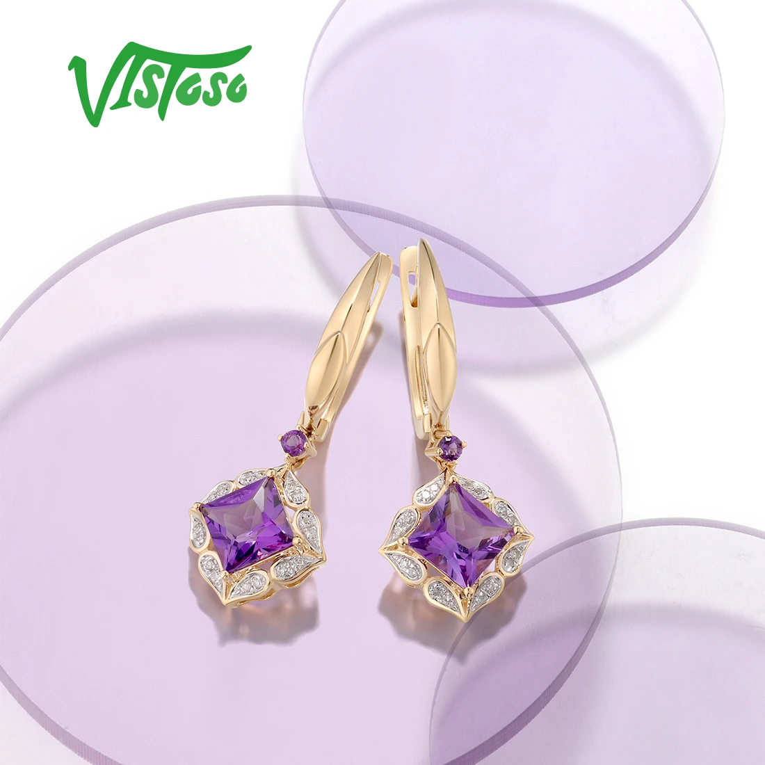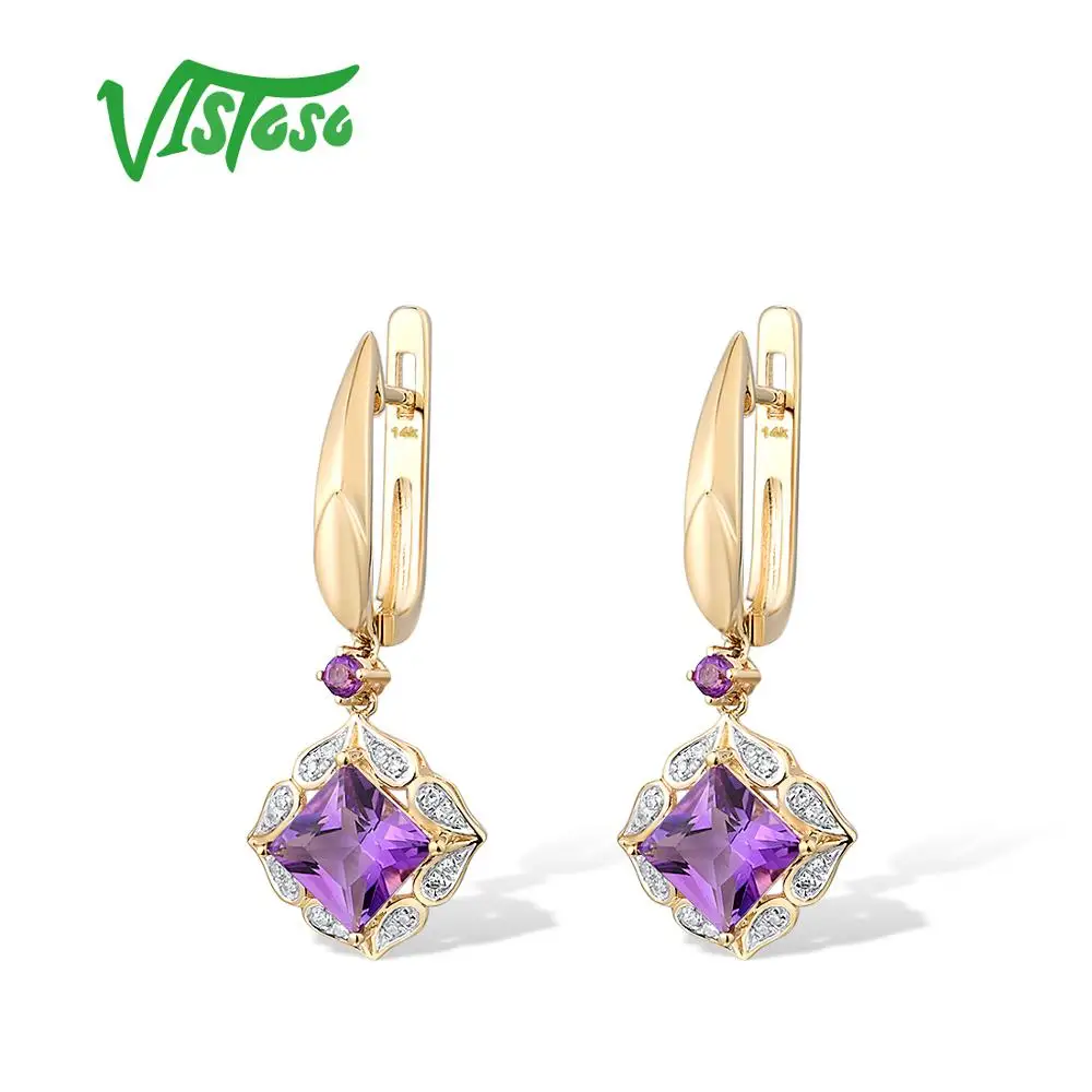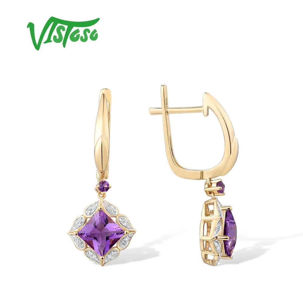 Special Offer VISTOSO أقراط الذهب للنساء 14K 585 الذهب الأصفر تألق الماس يتوهم الجمشت أنيقة الزفاف الذكرى غرامة مجوهرات Discount 50% Today!