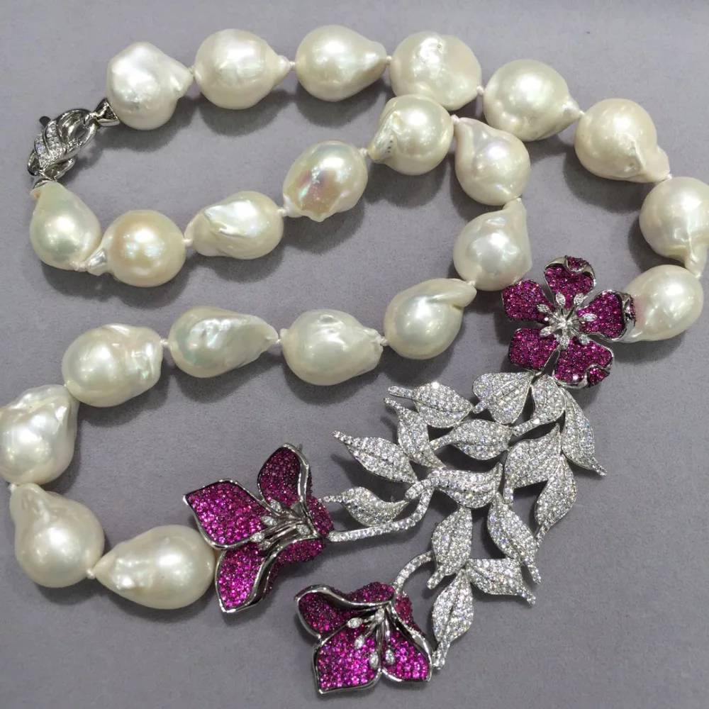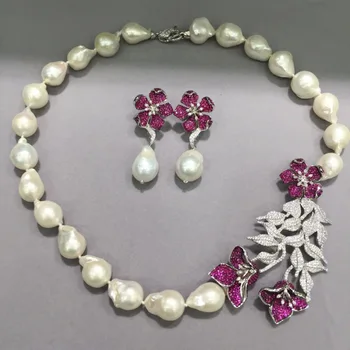 Special Offer الباروك لؤلؤ طبيعي من المياه النقية قلادة وحلق مجموعات مجوهرات 925 فضة مع مكعب الزركون زهرة قرط الاذن المرصع Discount 0% Today!