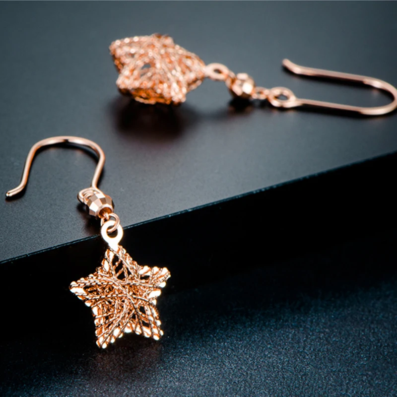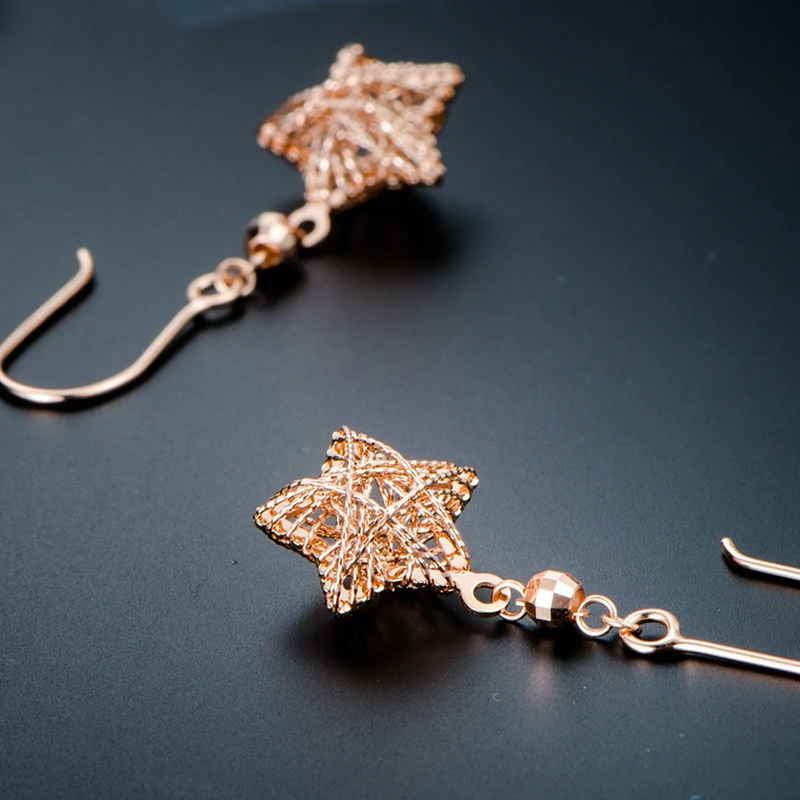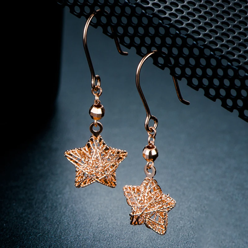 Special Offer Au750 ريال الصلبة 18K ارتفع الذهب أقراط النساء الحظ الجوف ستار استرخى أقراط 35x11.8 مللي متر 2-2.5 جرام Discount 50% Today!